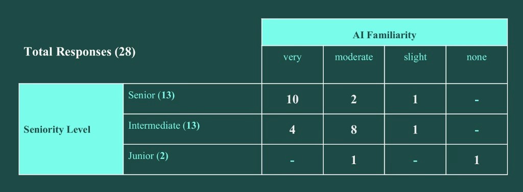 To evaluate the two mid-fidelity directions, we conducted a survey with 28 participants spanning a range of analyst seniority levels and familiarity with AI systems. Participants included junior, intermediate, and senior analysts with varying exposure to STT and AI-driven tools. The goal of this study was to understand how analysts interpret STT model recommendations, which explanation strategies they rely on when making selections, and how trust is built across different levels of experience.