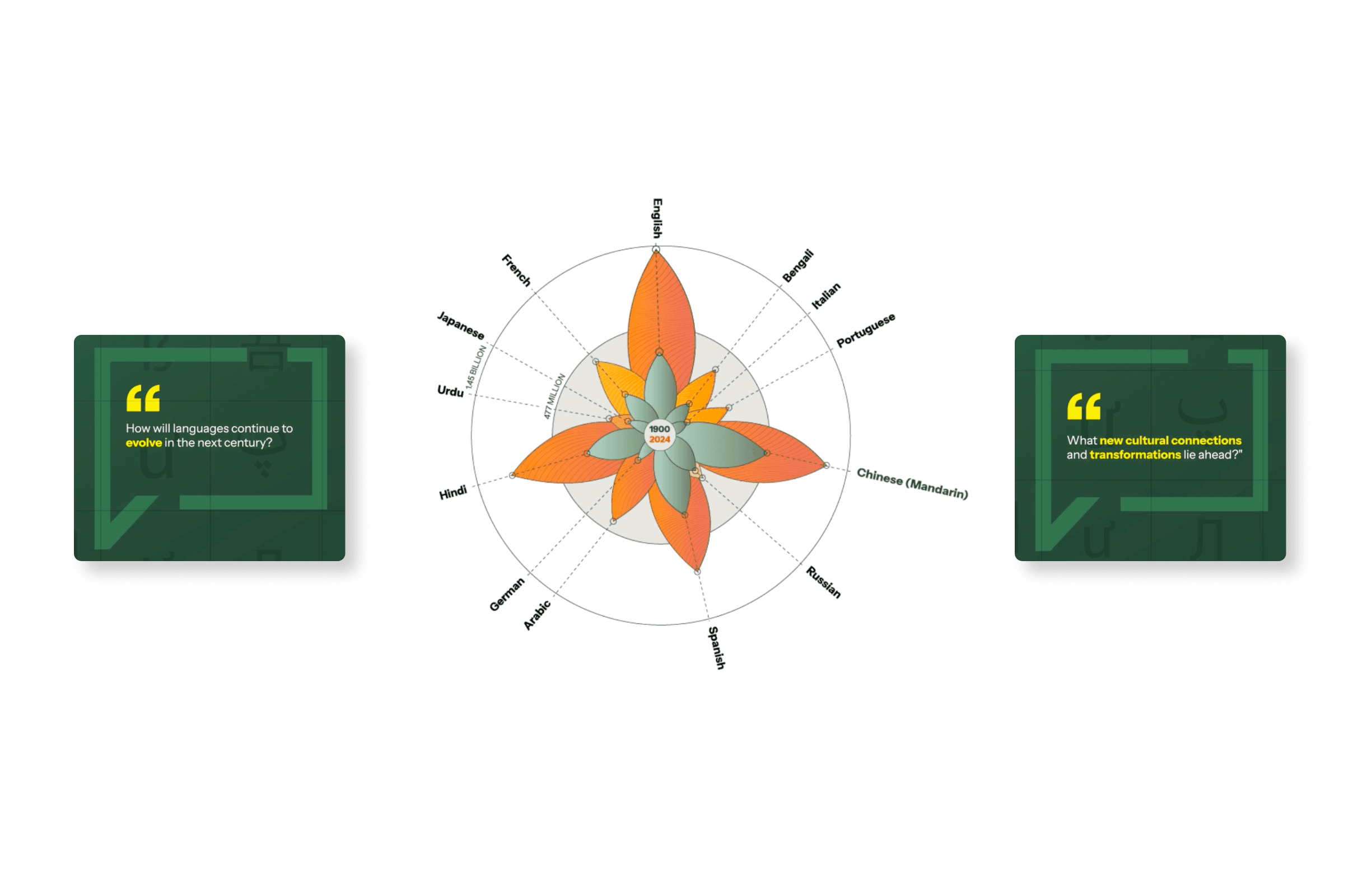 A spherical museum display that visualizes the evolution of the world’s most spoken languages over the past century, highlighting the impact of history, migration, and cultural exchange on global linguistic trends.